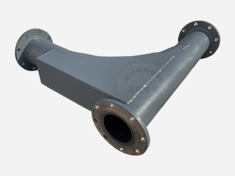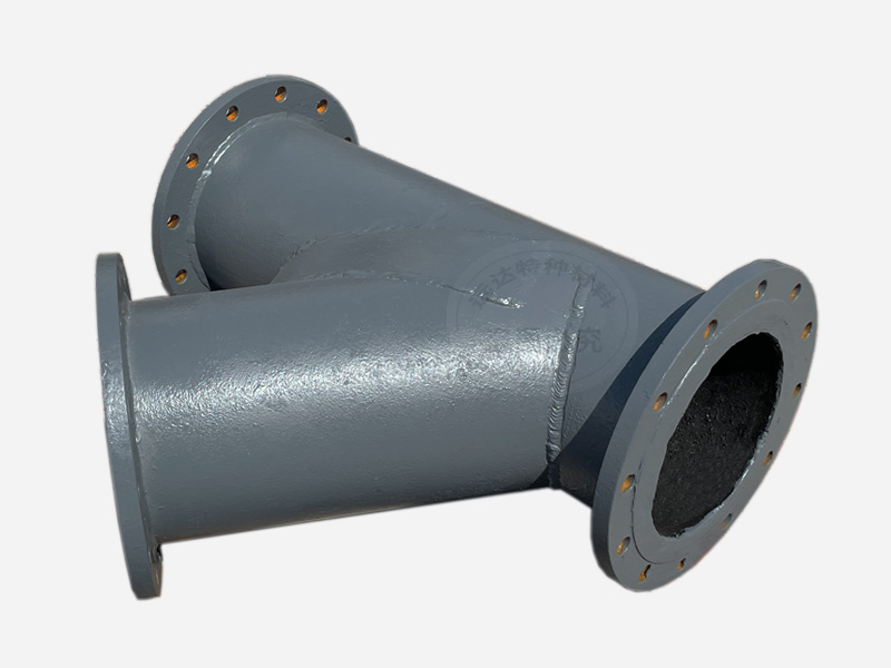 耐磨陶瓷三通從內(nèi)到外由剛玉陶瓷(AL2O3)層、過渡層和鋼管層組成,陶瓷層是由2600℃以上的熔融氧化鋁在離心力的作用下,均勻滲透復合在鋼管內(nèi)壁上的致密、光滑陶瓷層與鋼管成為一體。