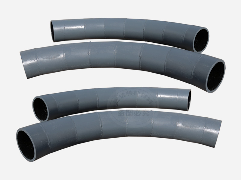 內(nèi)層為剛玉陶瓷,莫氏硬度在9.0以上,相當(dāng)于HRC90以上,因此對電力、煤炭、冶金、礦山所輸送的任何介質(zhì)均有高耐磨性。